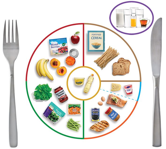 Include all fruits and vegetables in proper proportions. The Food and Drug Administration has put out a healthy “plate” to illustrate the right proportions. Half the plate should be fruits and vegetables, a quarter of the plate is healthy protein, and a quarter of the plate whole grains or starchy vegetables like potatoes, corn and peas. Then, you also need to have add your dairy and healthy fats. It’s as simple as that.